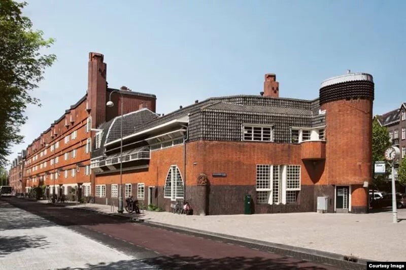 Кроме этого, голландский архитектор проектировал двухэтажные дома для электростанции, бани, клубы, магазины, школы. Таким образом следовал примеру Голландии – проектировал не отдельные дома, а целые жилые районы, в которых даже самая мелкая и, казалось бы, незначительная деталь является частью единого, логически выстроенного пространства для жизни.