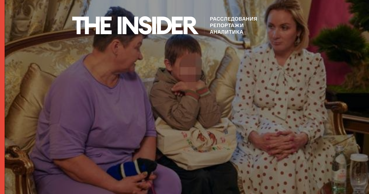 Семилетний украинский мальчик (в центре) в посольстве Катара в Москве. Рядом с ним сидят его бабушка (слева) и детский омбудсмен Мария Львова-Белова.