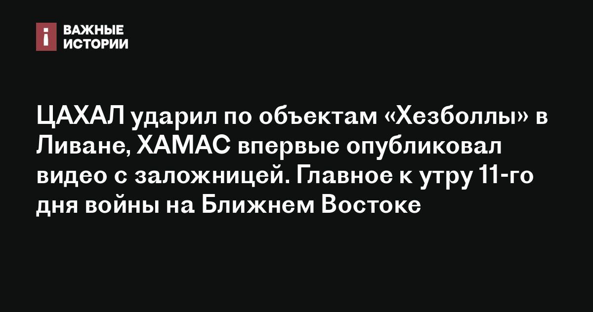 ЦАХАЛ ударил по объектам «Хезболлы» в Ливане, ХАМАС впервые опубликовал видео с заложницей. Главное к утру 11-го дня войны на Ближнем Востоке