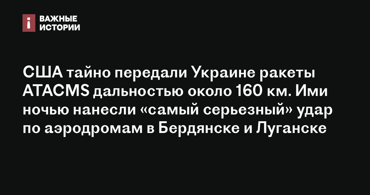 США тайно передали Украине ракеты ATACMS дальностью около 160 км. Ими ночью нанесли «самый серьезный» удар по аэродромам в Бердянске и Луганске