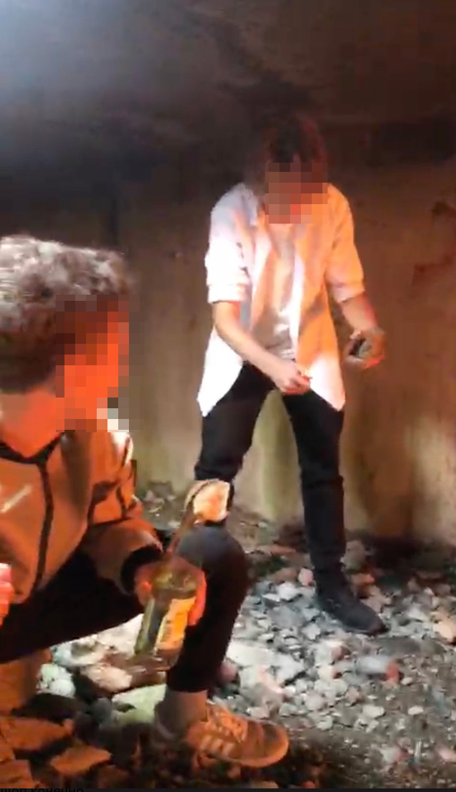 В этом 24-секундном ролике трое подростков по очереди поджигают и бросают в бетонную стену заброшенного здания четыре бутылки с зажигательной жидкостью. Те разбиваются, потолок бетонной коробки лижут языки пламени. Лиц на этом видео почти не разглядеть, камера то и дело перескакивает от фигур с бутылками в руках к пылающей стене.