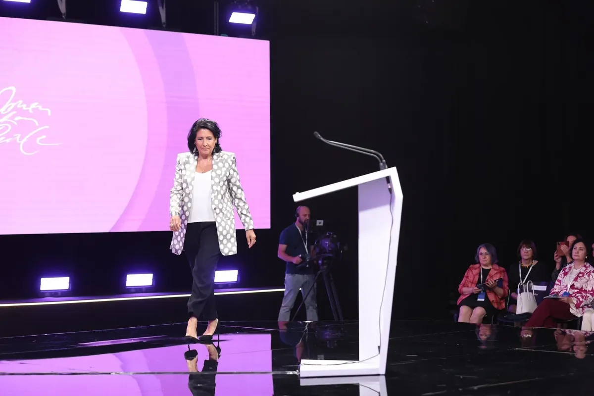 Вечером в понедельник новостные выпуски прервались из-за трансляции обращения президента: Саломе Зурабишвили была воплощением уверенности и упрека.