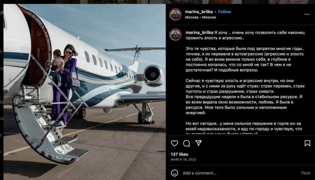 В марте 2022 года Марина Брилка писала, как переживает страх, злость и агрессию. Фото: соцсети