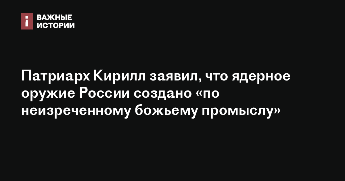 Патриарх Кирилл заявил, что ядерное оружие России создано «по неизреченному божьему промыслу»