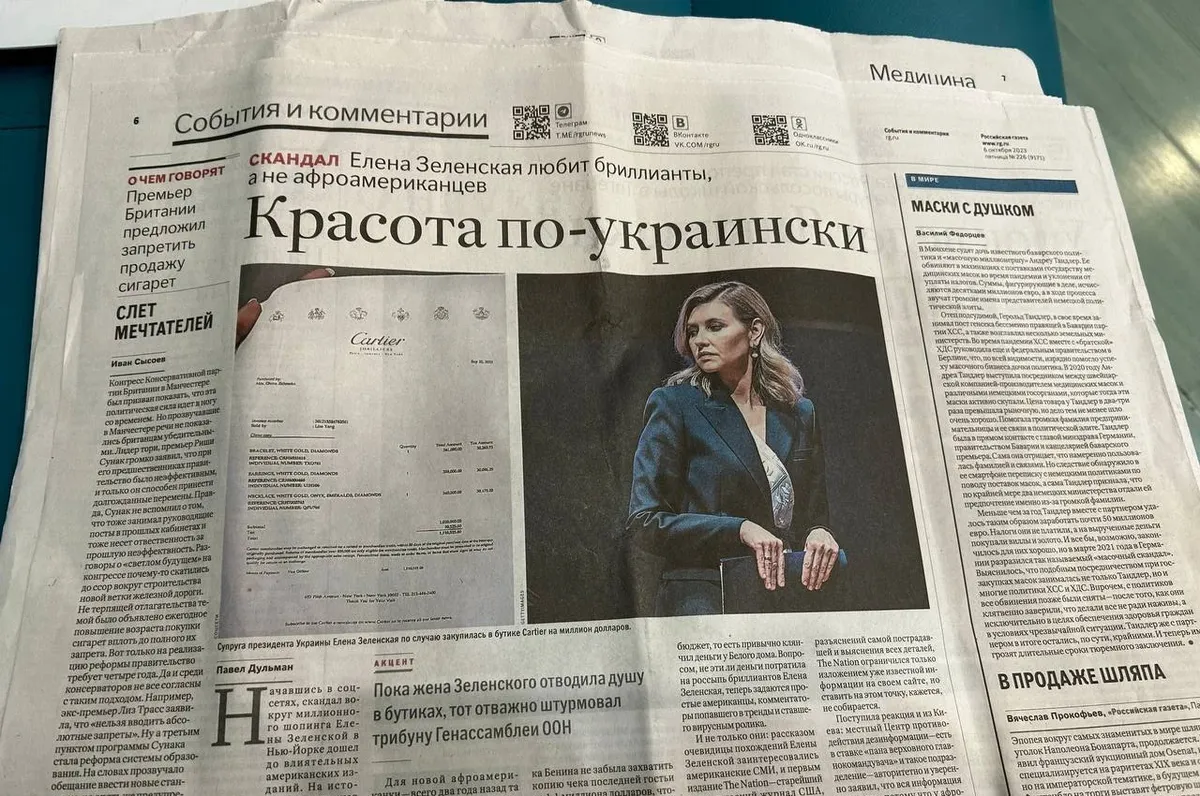 Статьи о походе Зеленской в ювелирный бутик на Пятой авеню в Нью-Йорке вышли 5 октября и в печатных номерах, и на сайтах «РГ и «КП». Авторы утверждают, что первая леди Украины радовала себя шопингом, пока ее муж Владимир Зеленский выступал на Генассамблее ООН и просил у американцев деньги на новый пакет военной помощи для Украины.