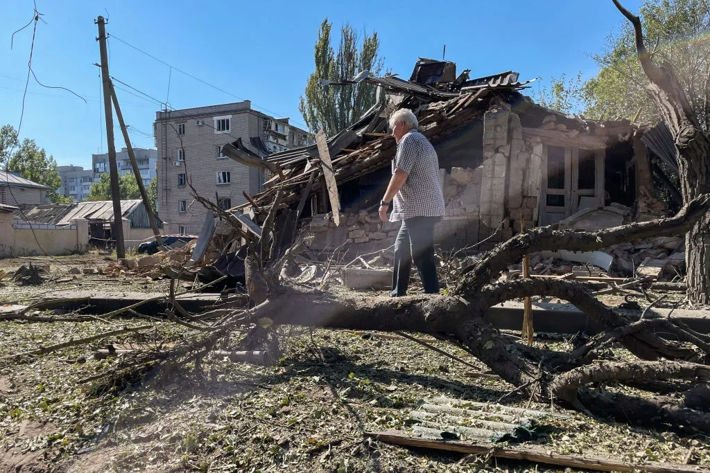 Kherson residents clearing rubble of a destroyed house, October 2023. Photo: Ihor Pedchenko / Suspilne Ukraine / JSC "UA:PBC" / Global Images Ukraine / Getty Images