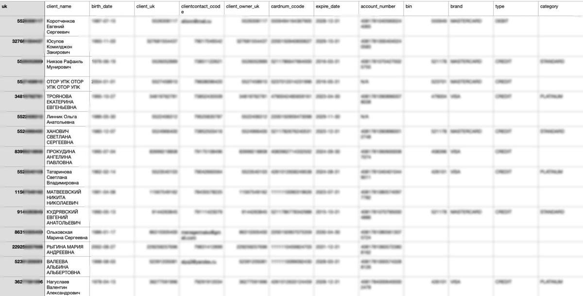 Хакеры опубликовали часть полученных ими данных. В них содержатся Ф. И. О., даты рождения, номера телефонов, а также информация о номерах карт и счетов почти 44 тысяч клиентов банка. «Важные истории» случайной выборкой проверили, что это данные реальных людей.