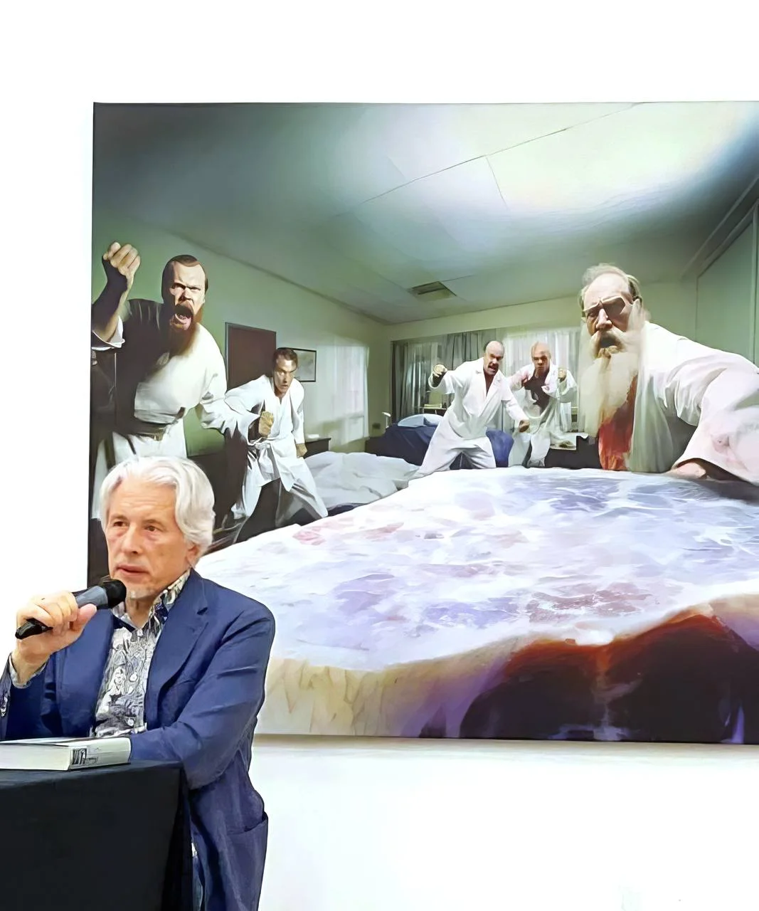 Когда дама из публики задала Сорокину вопрос о Никитине, тот сказал, что всё же главное — автор замысла, и быстро передал микрофон Гельману. Гельман отметил, что ошибка исправлена, Никитин теперь упомянут, но, впрочем, всё это неважно. Ибо три месяца назад профессии промпт-инженера еще не было и найти специалиста было сложно. Сейчас их уже много. А через три месяца их, вероятно, уже не будет: интерфейс MidJourney развивается, и посредники станут не нужны.