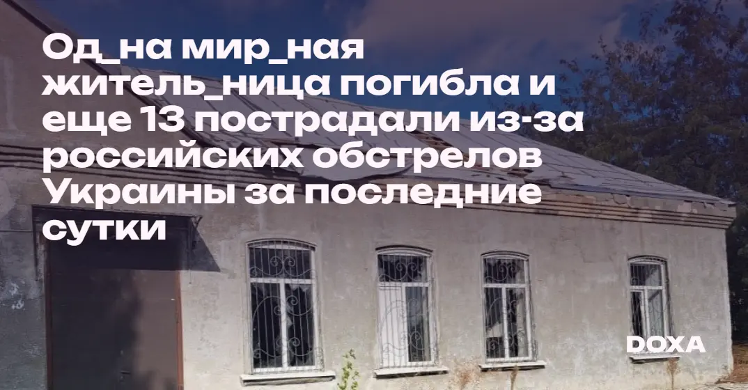 Од_на мир_ная житель_ница погибла и еще 13 пострадали из-за российских обстрелов Украины за последние сутки