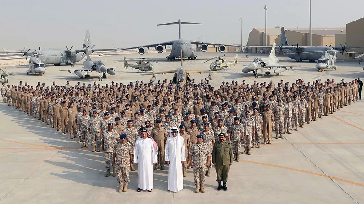 Эмир Катара шейх Тамим бен Хамад Аль Тани с военнослужащими ВВС ОАЭ на авиабазе Аль-Удейд в Дохе. Фото: AP / TASS