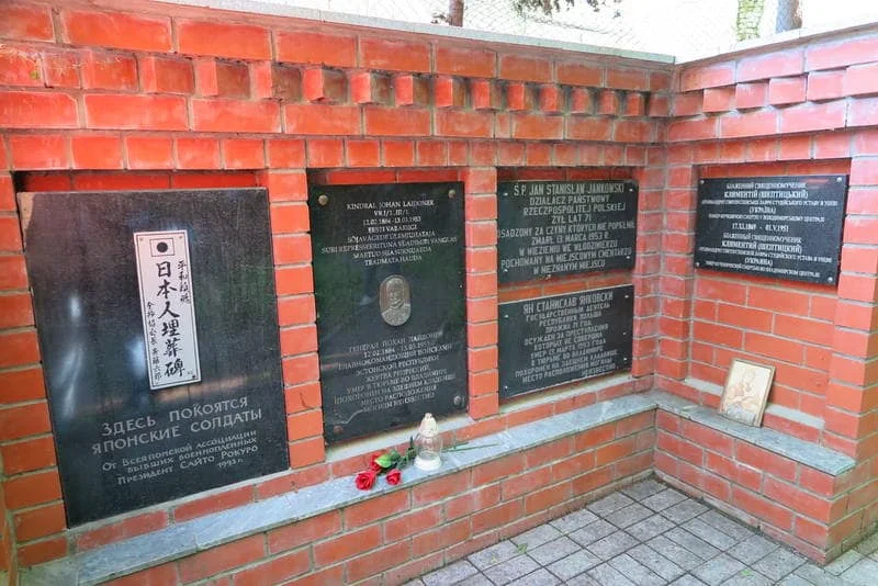 На мемориале были также таблички, посвященные министру иностранных дел Литвы и католическому архиепископу Мечисловасу Рейнису, польскому политику Яну Янковскому и японскому генералу Акикусе Сюну.