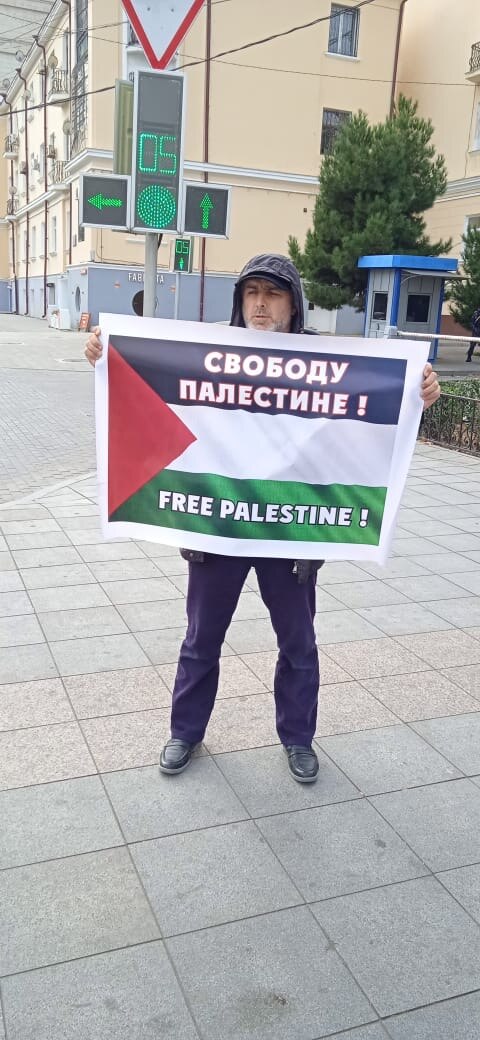 В Махачкале прошел одиночный пикет в поддержку Палестины – внимание к стране призвал обратить врач Салим Халитов. Кроме того, другой участник акции, Идрис Юсупов, выступил с требованием освободить дагестанского журналиста Абдулмумина Гаджиева, которого осудили по делу о финансировании терроризма. Акции в отношении последнего проходят в Махачкале каждую неделю на протяжении четырех лет.