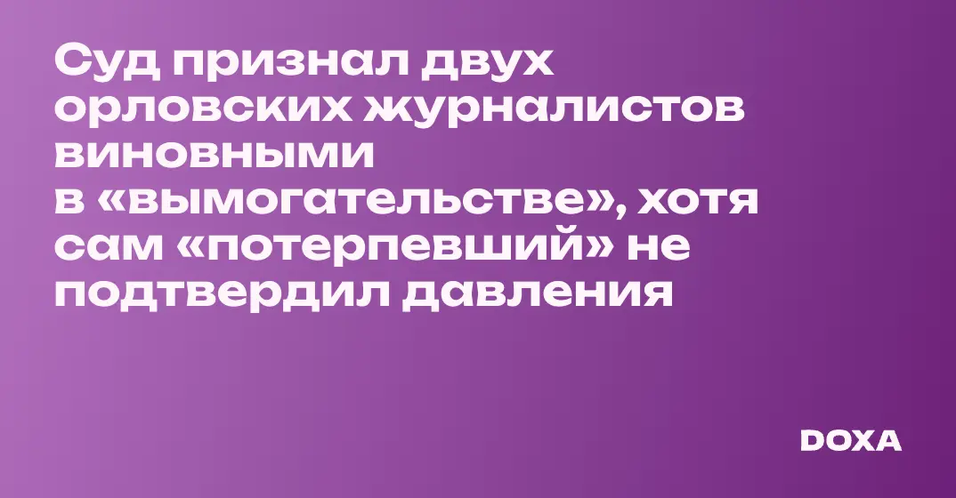 Суд признал двух орловских журналистов виновными в «вымогательстве», хотя сам «потерпевший» не подтвердил давления