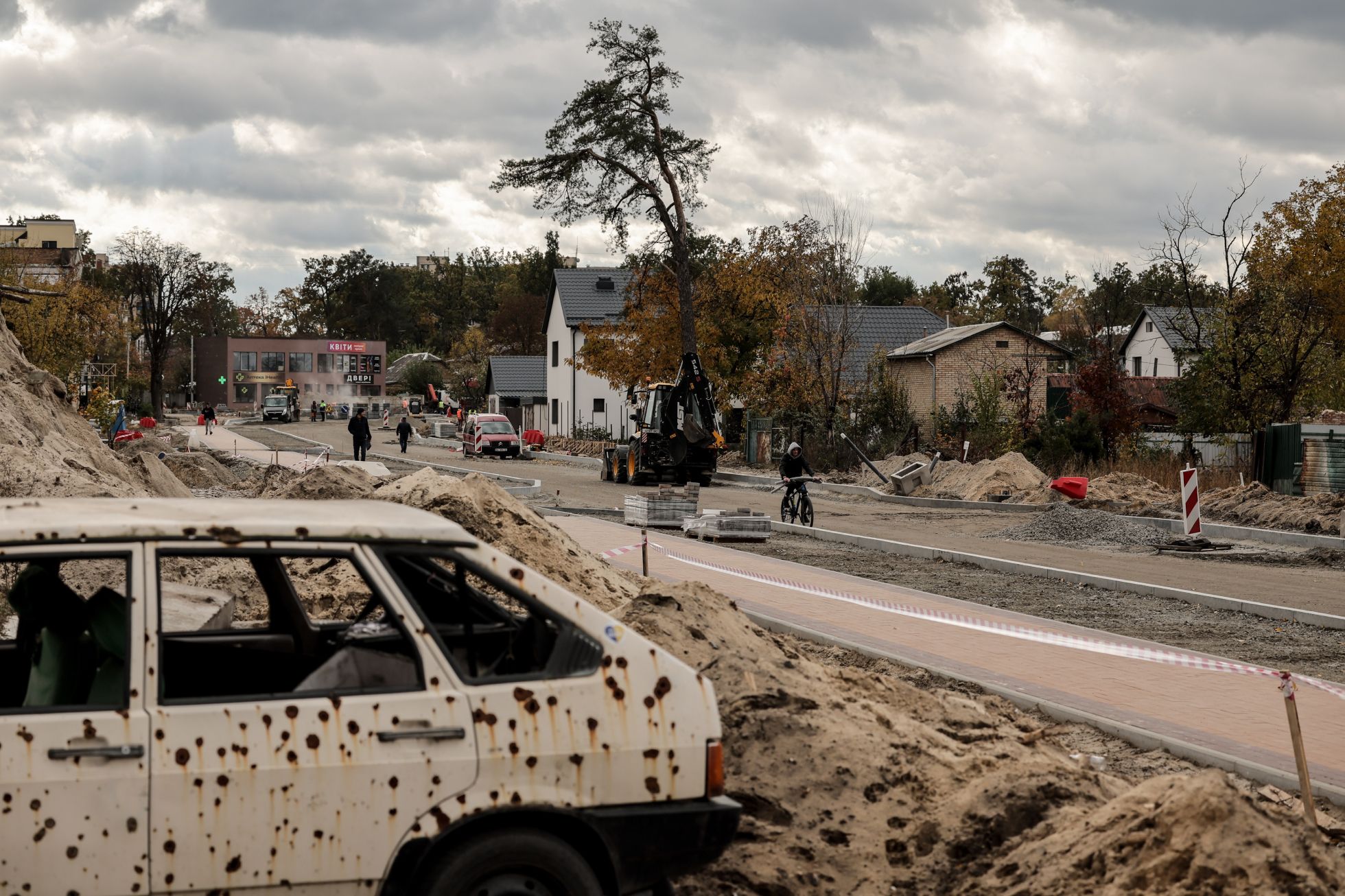 В марте 2022-го российские войска захватили Ирпень. За месяц оккупации сотни жителей были убиты, сам город — почти разрушен. Посмотрите, как его отстраивают заново