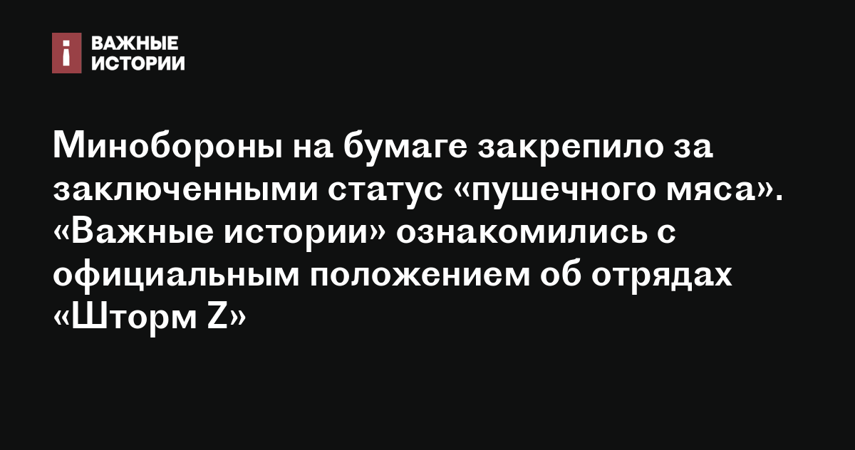 Минобороны на бумаге закрепило за заключенными статус «пушечного мяса». «Важные истории» ознакомились с официальным положением об отрядах «Шторм Z»
