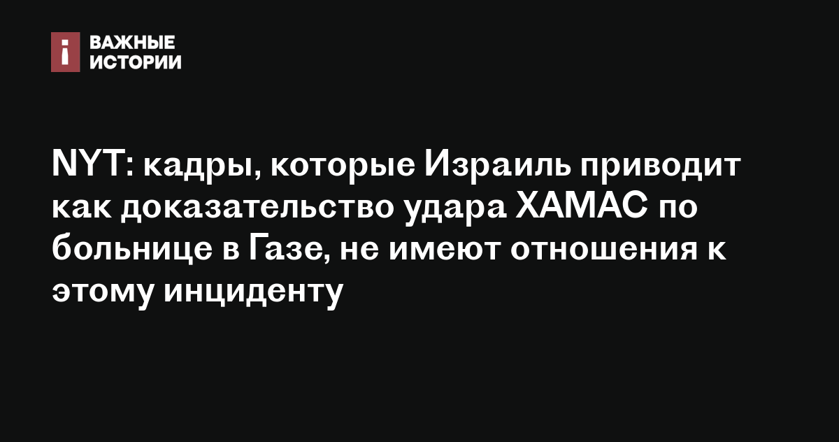 NYT: кадры, которые Израиль приводит как доказательство удара ХАМАС по больнице в Газе, не имеют отношения к этому инциденту
