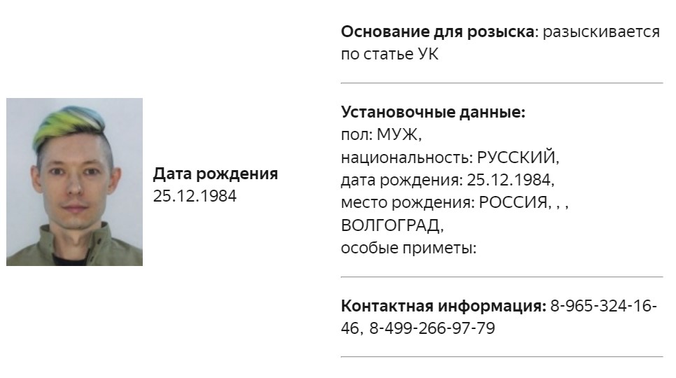 МВД объявило в розыск волгоградского стрит-арт художника Филиппа Козлова (Philippenzo). Внимание на информацию в базе розыска обратила «Медиазона».