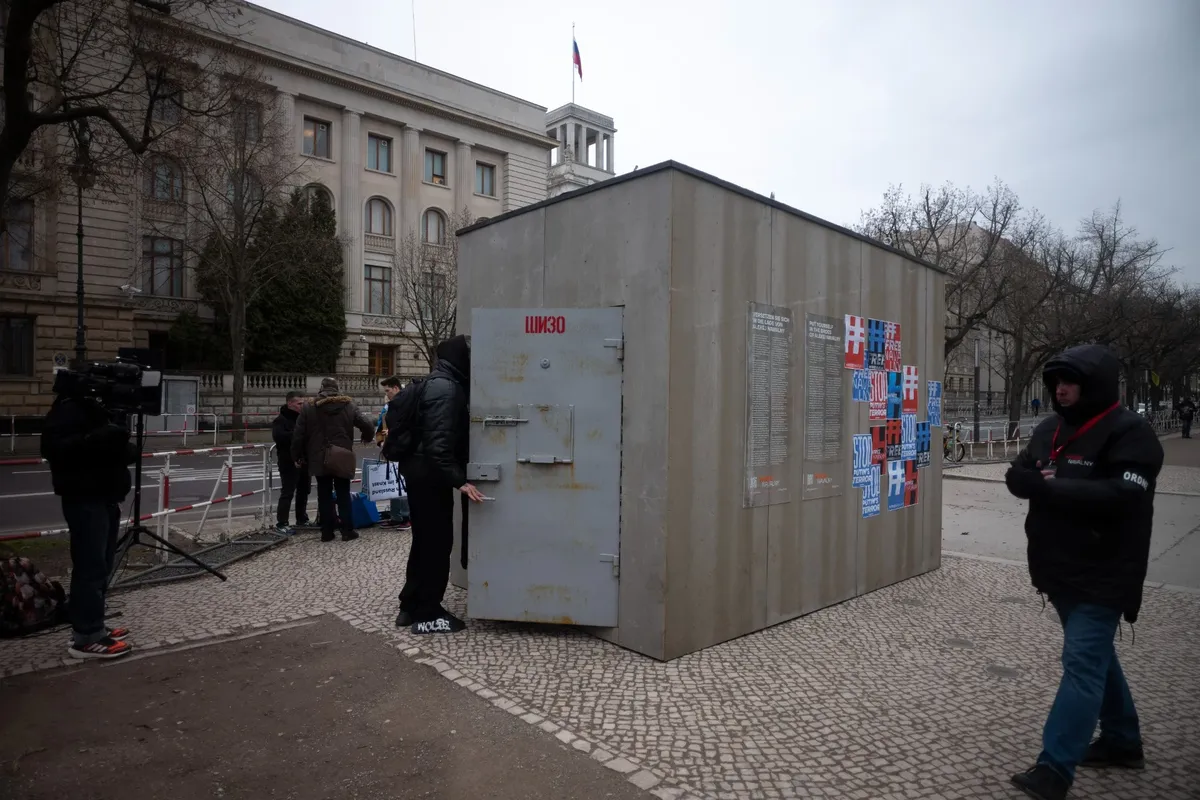 Олег Навальный, брат Алексея Навального внутри копии штрафного изолятора (ШИЗО). Берлин, 2023 год. Фото: AP / TASS
