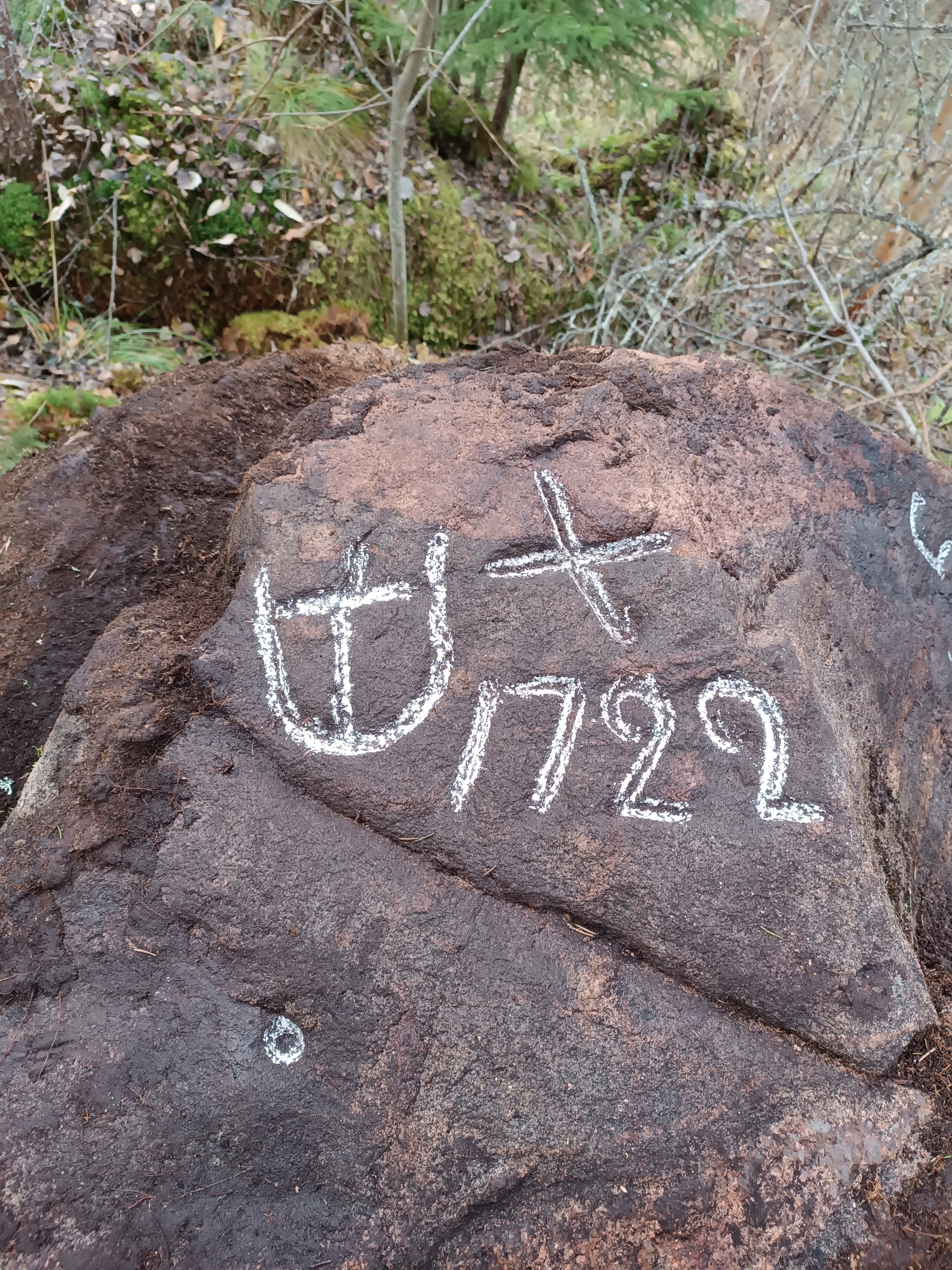 Детали. Гранитный валун с демаркационными знаками в виде шведской короны и креста и датой нанесения (1722 год) нашли Сергей Данилов, Виктор Малюшин и Юрий Вагин на границе Выборгского района Ленобласти и Республики Карелия.