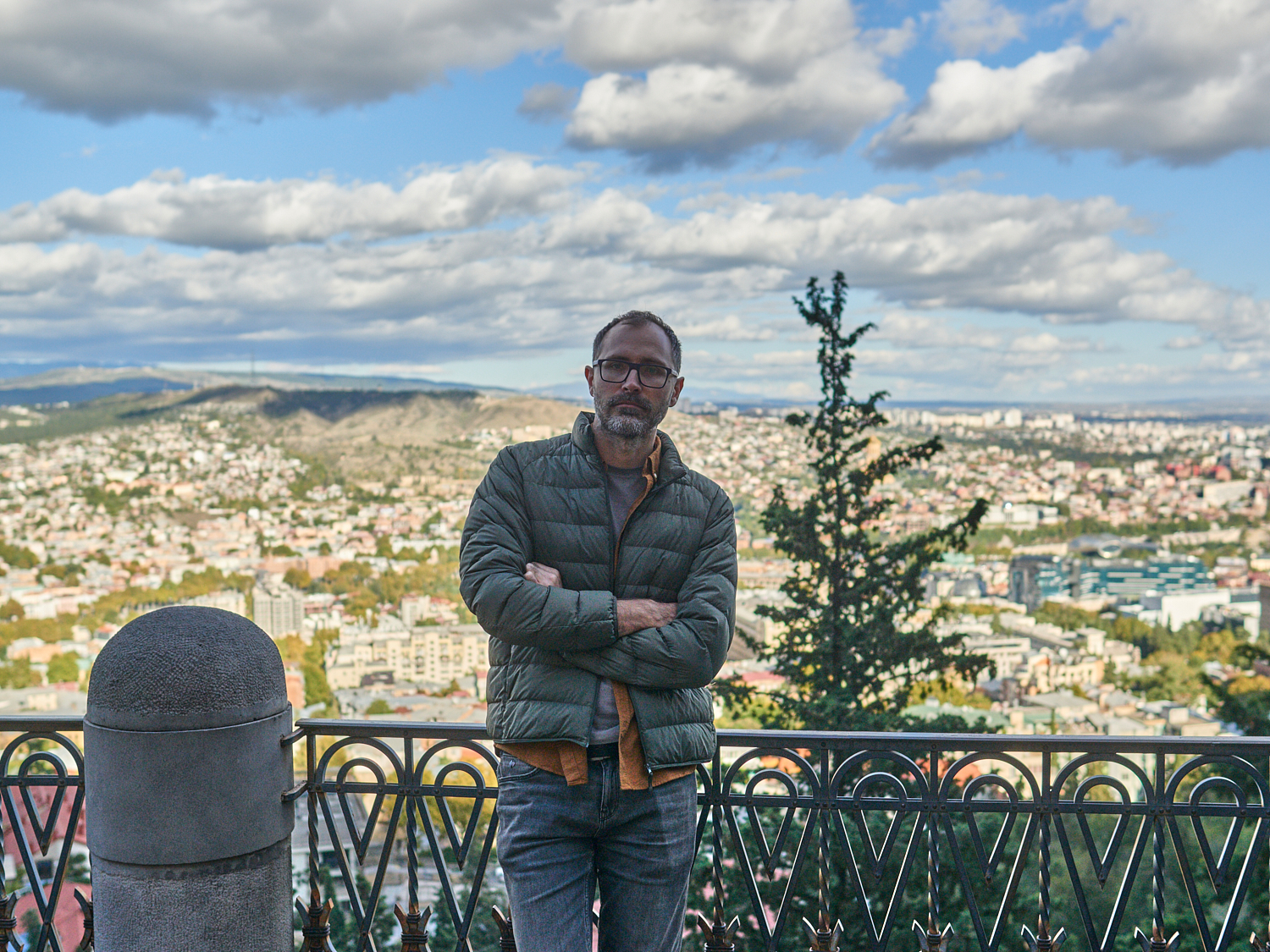 — Мы на Мтацминде, возле Панетеона. Когда оказался в Тбилиси, я спросил, где тут есть высокая точка. И полез — в [Мтацминда] парк. Честно говоря, он мне не очень понравился. Он какой-то очень обычный.