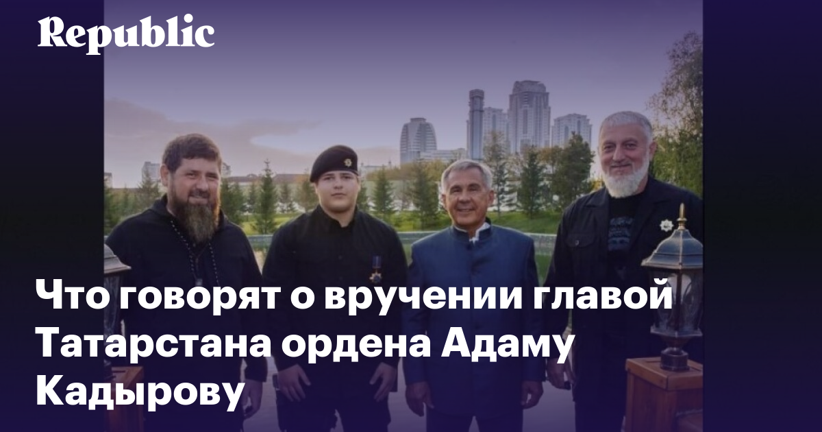Власти Татарстана о визите Минниханова в Чечню не сообщали и документ о награждении не публиковали. Информации об этом нет ни на одной официальной странице главы республики в соцсетях. Зато новость о награждении Адама появилась в местных пабликах, где поступок главы Татарстана резко осуждают. Подробнее — в материале Republic.