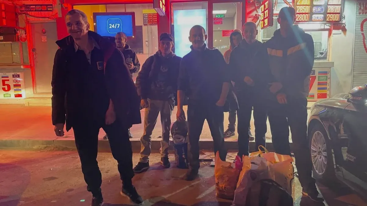 Заключенные из тюрем Херсонской области сразу после пересечения границы КПП «Дарьял». Фото: Volunteers Tbilisi, специально для «Новой газеты Европа»