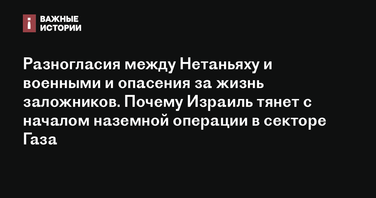 Разногласия между Нетаньяху и военными и опасения за жизнь заложников. Почему Израиль тянет с началом наземной операции в секторе Газа