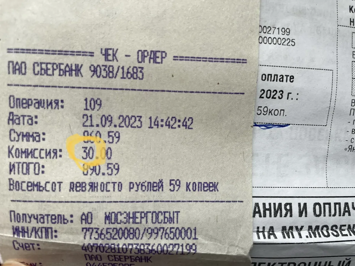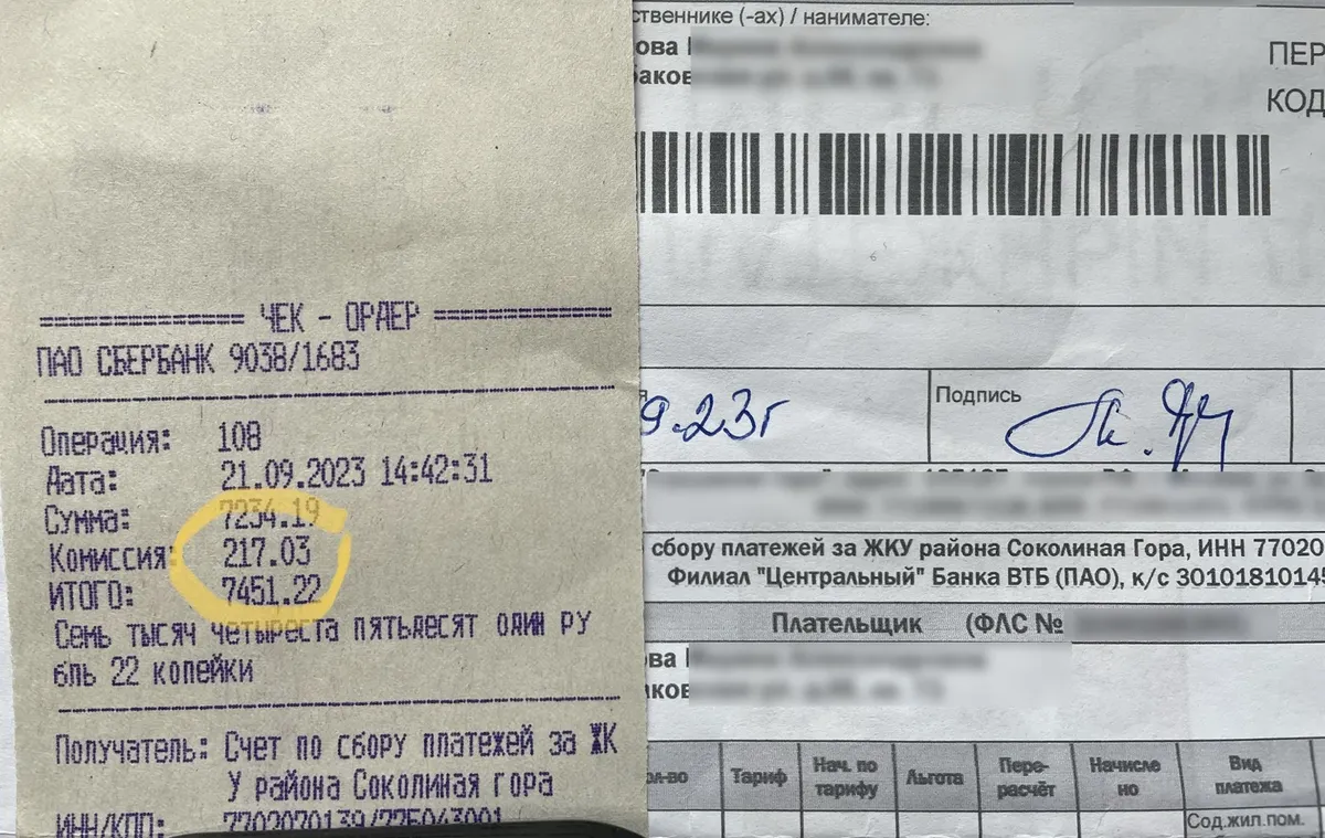 — Сейчас скажу (достает папку с квитанциями и кассовыми чеками). Вот тут в чеке сумма стоит. А вот квитанции от Мосэнерго — тоже с комиссией.
