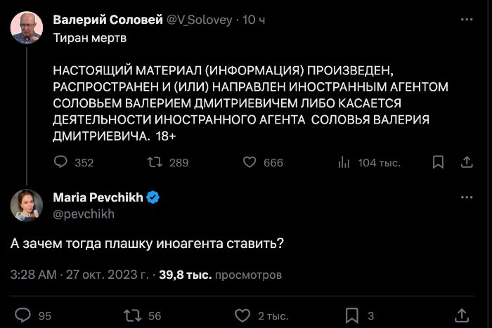 Журналист-расследователь Андрей Захаров и глава ФБК Мария Певчих открыто высмеяли Соловья. Позже историк заблокировал журналиста за твит.