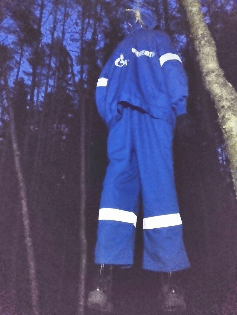 Повешенный манекен в форме «Газпрома» нашли в лесу