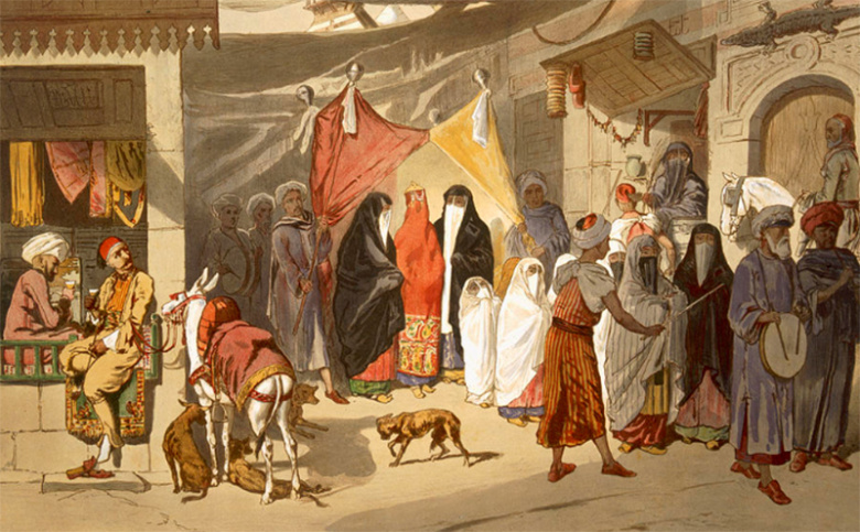 Арабская свадебная процессия в Каире. Французская цветная литография, 1860