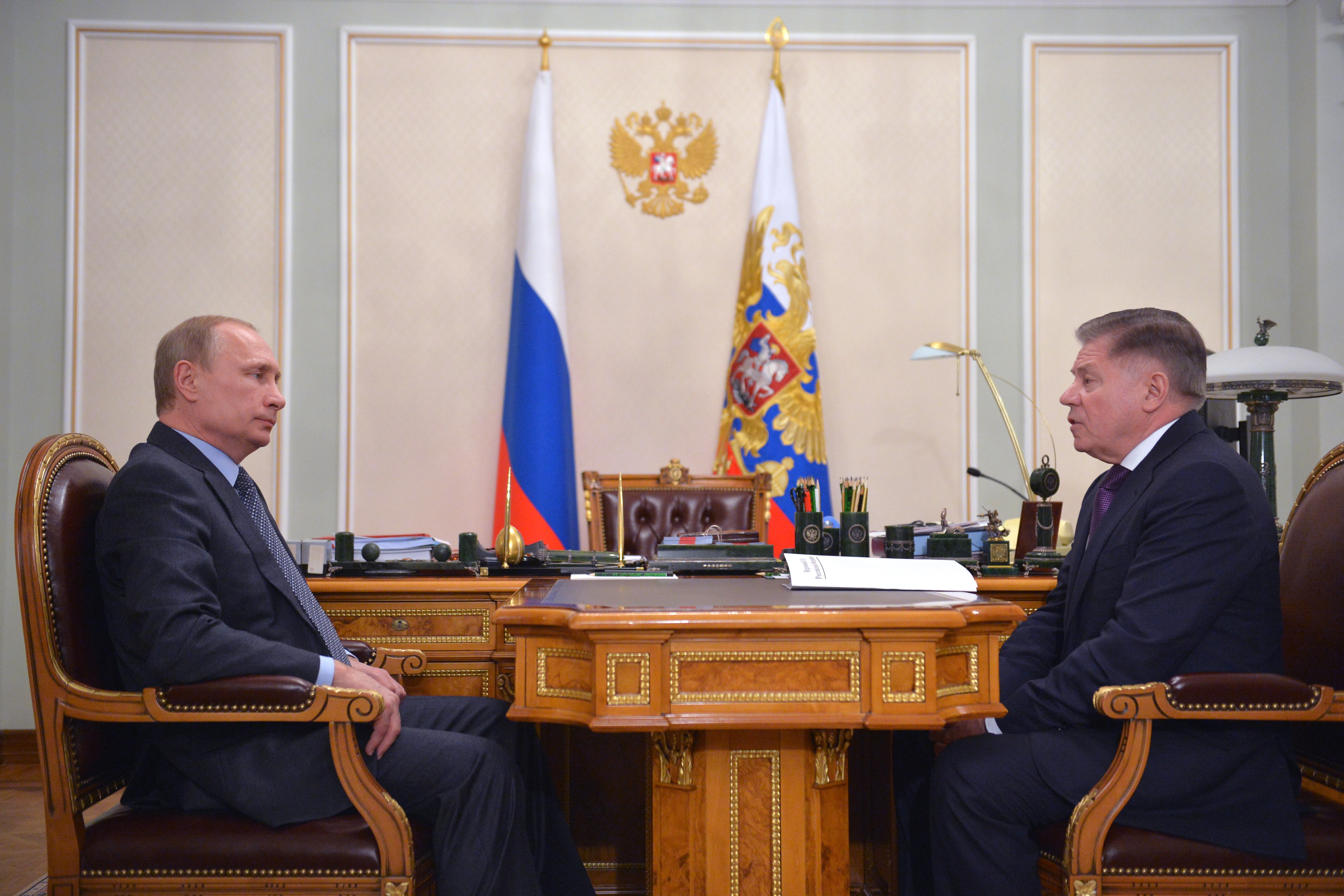 Президент России Владимир Путин и председатель Верховного суда РФ Вячеслав Лебедев, 2015 год