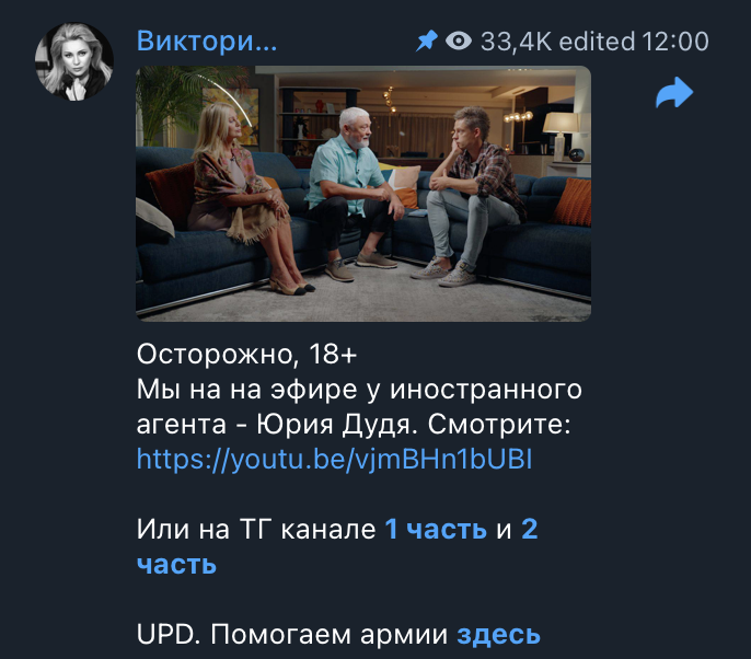 Контекст. В пятницу, 27 октября, Юрий Дудь опубликовал интервью длительность в 3,5 часа с Викторией и Вадимом Цыгановыми.