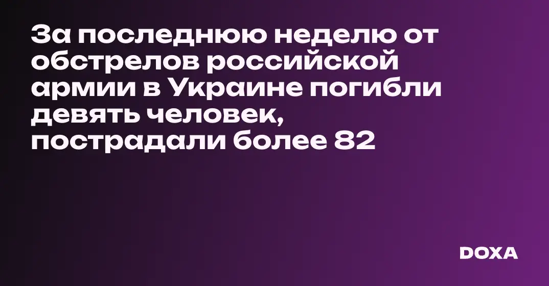 За последнюю неделю от обстрелов российской армии в Украине погибли девять человек, пострадали более 82