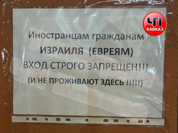 Телеграм-канал «ЧП Кавказ» сообщает, что после схода возле гостиницы «Фламинго» повесили объявление о том, что евреи там не живут и вход им туда запрещен.