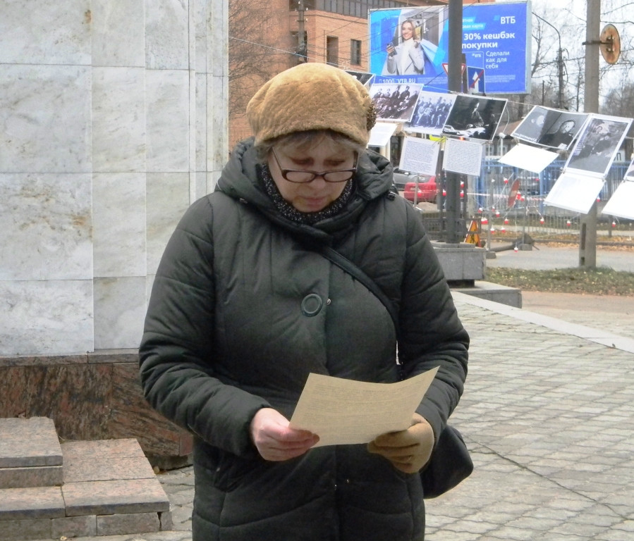 Как обычно, к Часовне-мемориалу жертв политических репрессий были прикреплены два десятка портретов жертв сталинского террора, а внутри зажжены свечи. Представительница «Преображенского братства» Валентина Пидцерковная зачитала молитву, а затем собравшиеся по очереди озвучивали имена репрессированных, взятые из мартиролога "Покаяние". После каждых десяти имен бил колокол.