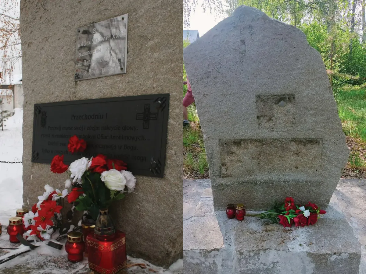 При каких обстоятельствах уничтожены: осквернение памятников было обнаружено в начале лета этого года. Неизвестные сняли с них таблички, а также кресты, фигуру Иисуса Христа и образ Богородицы. Это один из немногих случаев разрушения памятников, по которому полиция хотя бы формально провела проверку, однако виновных найти не смогла.
