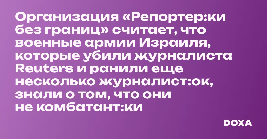 Организация «Репортер:ки без границ» считает, что военные армии Израиля, которые убили журналиста Reuters и ранили еще несколько журналист:ок, знали о том, что они не комбатант:ки
