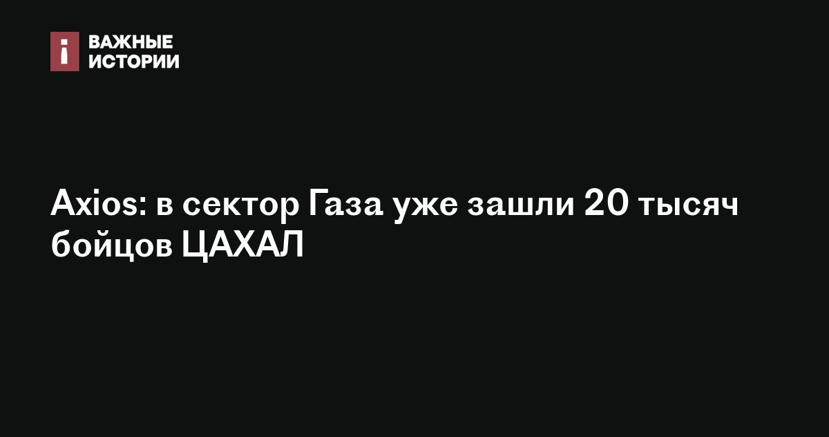 Axios: в сектор Газа уже зашли 20 тысяч бойцов ЦАХАЛ