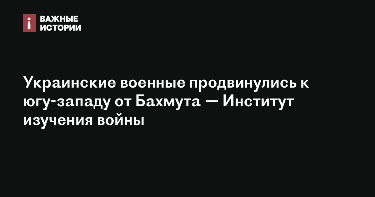 Украинские военные продвинулись к юго-западу от Бахмута — Институт изучения войны