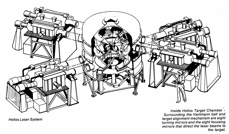 Дальше — опять плотная программа встреч с физиками и посещений их лабораторий, в одной из которых нам показали самый большой импульсный СО2-лазер HELIOS и камеру взаимодействия — цилиндр четырехметровой высоты.