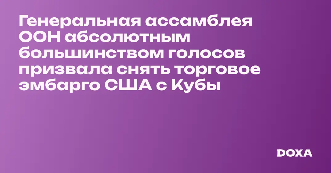Генеральная ассамблея ООН абсолютным большинством голосов призвала снять торговое эмбарго США с Кубы
