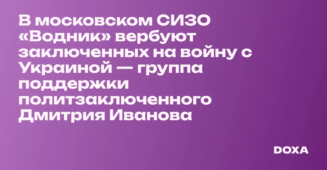 В московском СИЗО «Водник» вербуют заключенных на войну с Украиной — группа поддержки политзаключенного Дмитрия Иванова