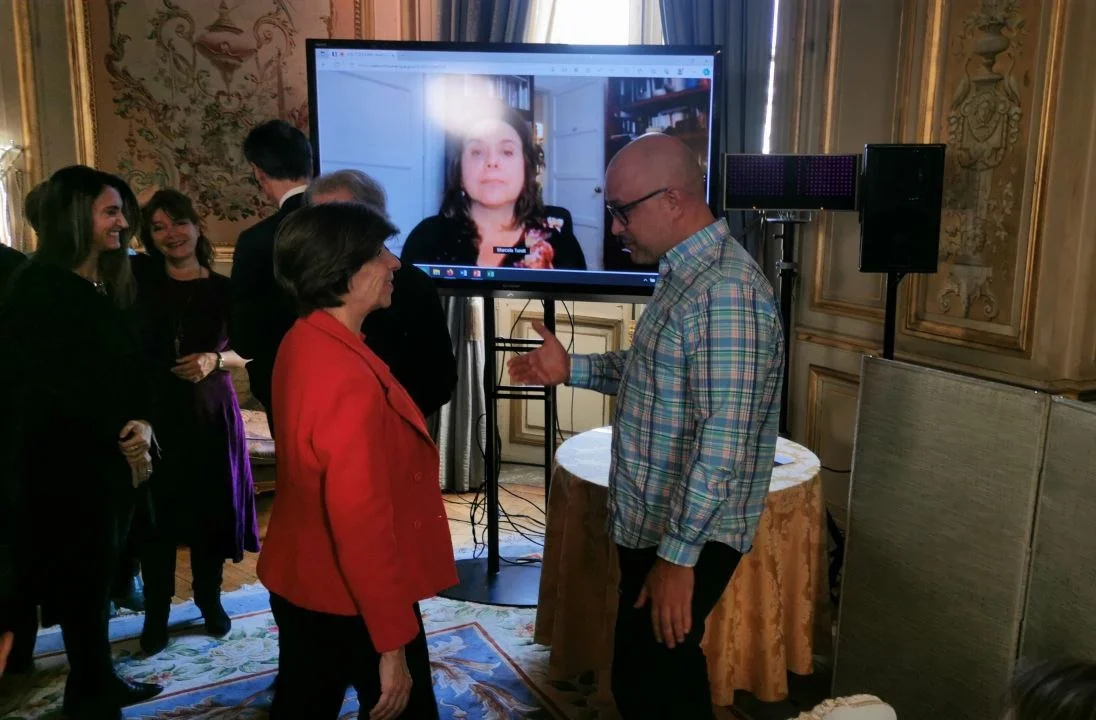 Потом — после короткого вступления известнейших французских журналистов Пьера Аски и Манон Луазо (еще один наш друг, военный репортер, друг Анны Политковской) — говорила (по видеосвязи) лауреатка Марчела Турати. Она уже 15 лет пишет о наркоторговле в Мексике. Является основателем организации Periodistas de a Pie — коллектива журналисток, занимающихся обучением и поддержкой коллег. Она же основала и ассоциацию журналистов-расследователей Quinto Elemento Lab.