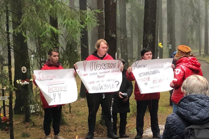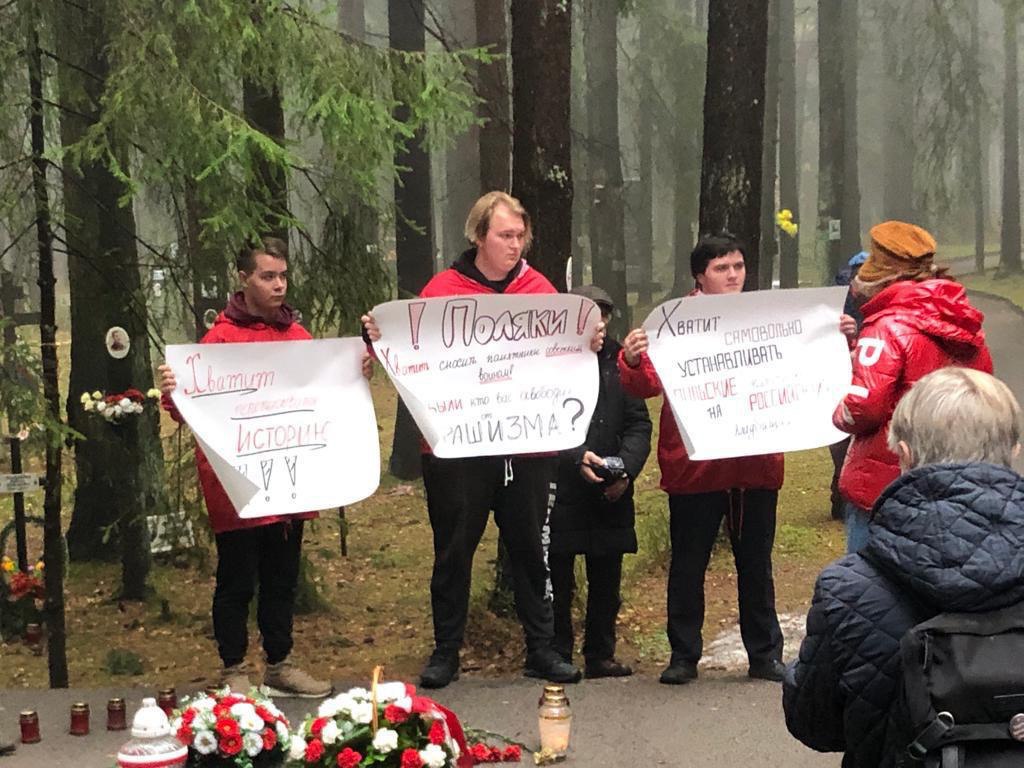 В «Мемориале» предположили, что его могли унести с собой участники «Волонтерской роты», которые вместе с католической общиной Петербурга пришли на кладбище в День всех святых и поминовения усопших. Во время мероприятия активисты развернули антипольские плакаты.