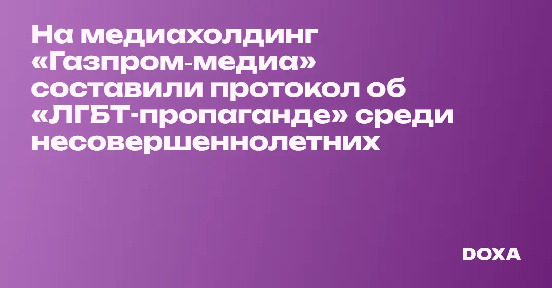 На медиахолдинг «Газпром‑медиа» составили протокол об «ЛГБТ-пропаганде» среди несовершеннолетних