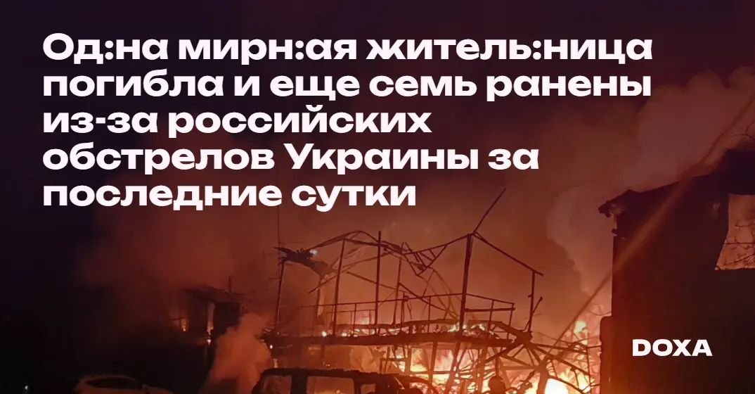 Од:на мирн:ая житель:ница погибла и еще семь ранены из-за российских обстрелов Украины за последние сутки