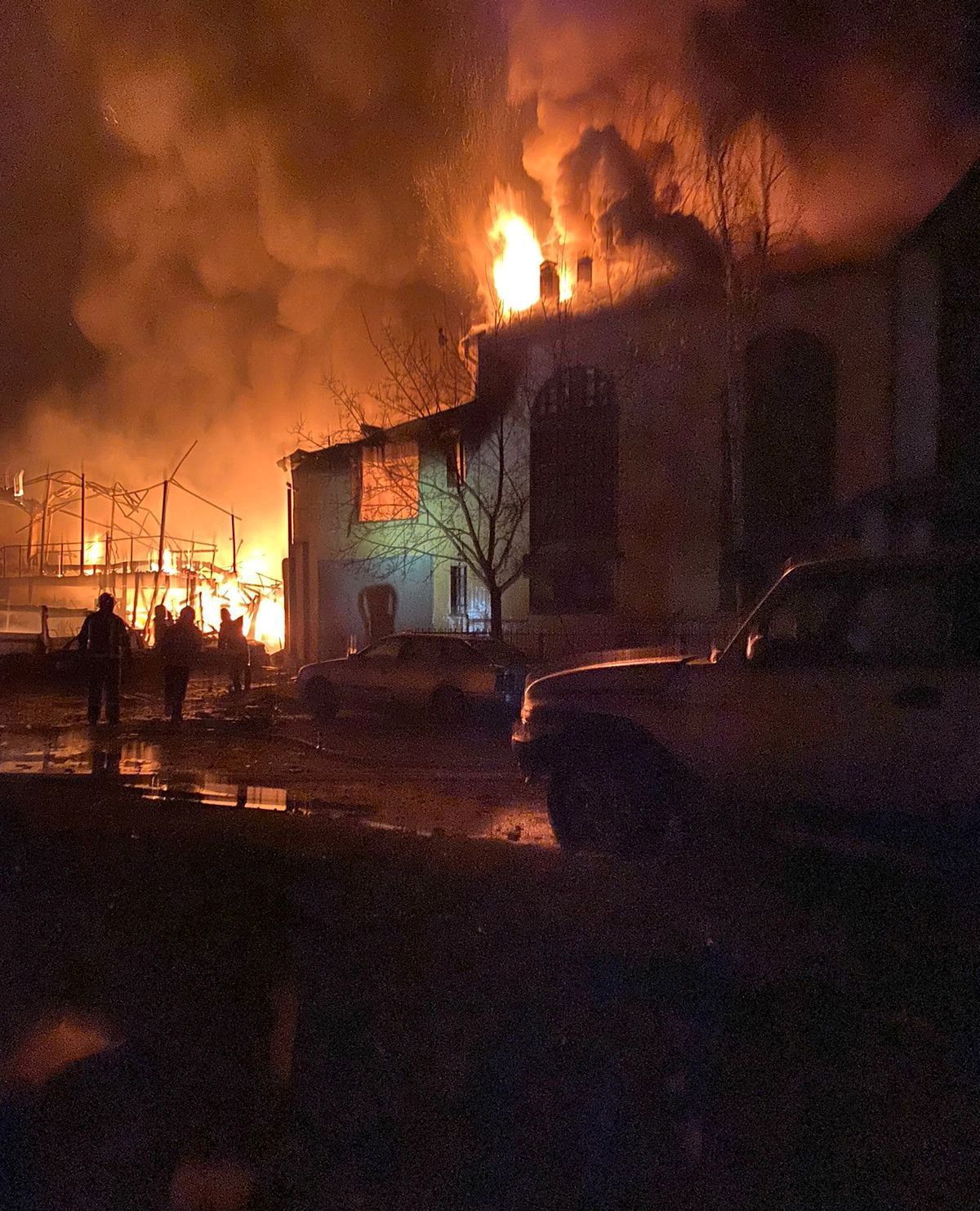 В пригороде Харькова в поселке Коротич в результате удара дрона загорелись два нежилых здания. По предварительной информации, при ударе использовали пять БПЛА.
