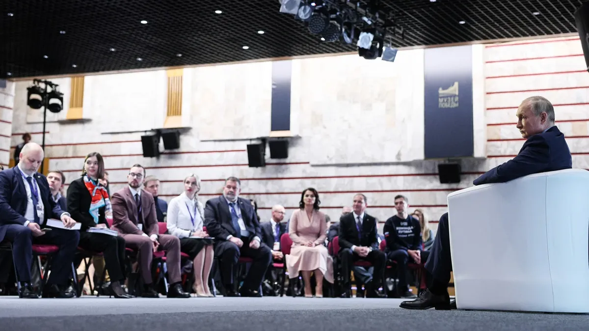 Президент РФ Владимир Путин во время встречи с новым составом Общественной палаты РФ в Центральном музее Великой Отечественной войны. Фото: Гавриил Григоров / пресс-служба президента РФ / ТАСС