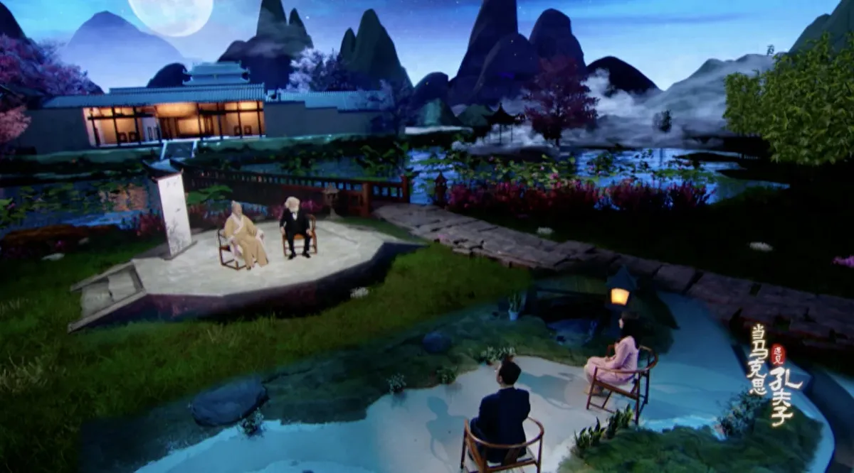 Эпизод «Изучения сутр», Маркс и Конфуций встретились в Академии Юэлу. Скриншот: gmw.cn
